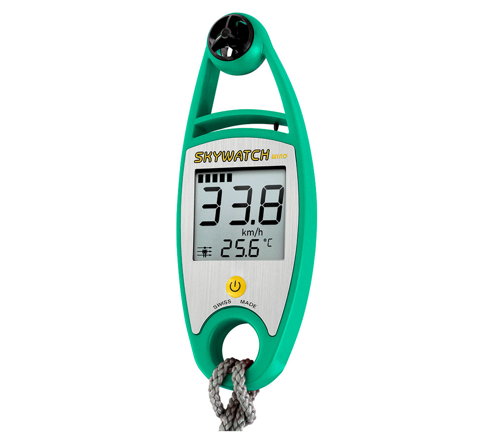 Le JDC Electronic SKYWATCH WIND est un anémomètre conçu et fabriqué en Suisse, il mesure la vitesse du vent, la température de l'air et l'indice de refroidissement éolien rapidement et avec précision. Il est assez compact pour être emporté facilement dans votre sellette de parapente. Il est insensible à la poussière et résistant aux chocs, avec une hélice remplaçable.