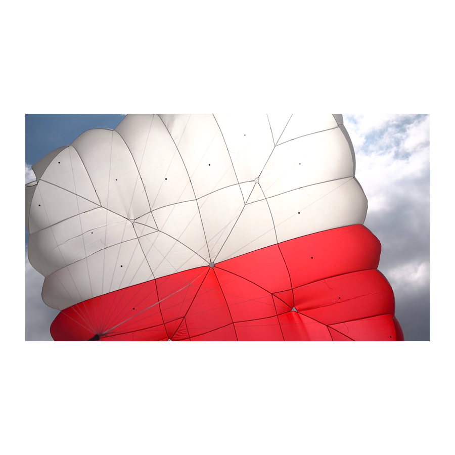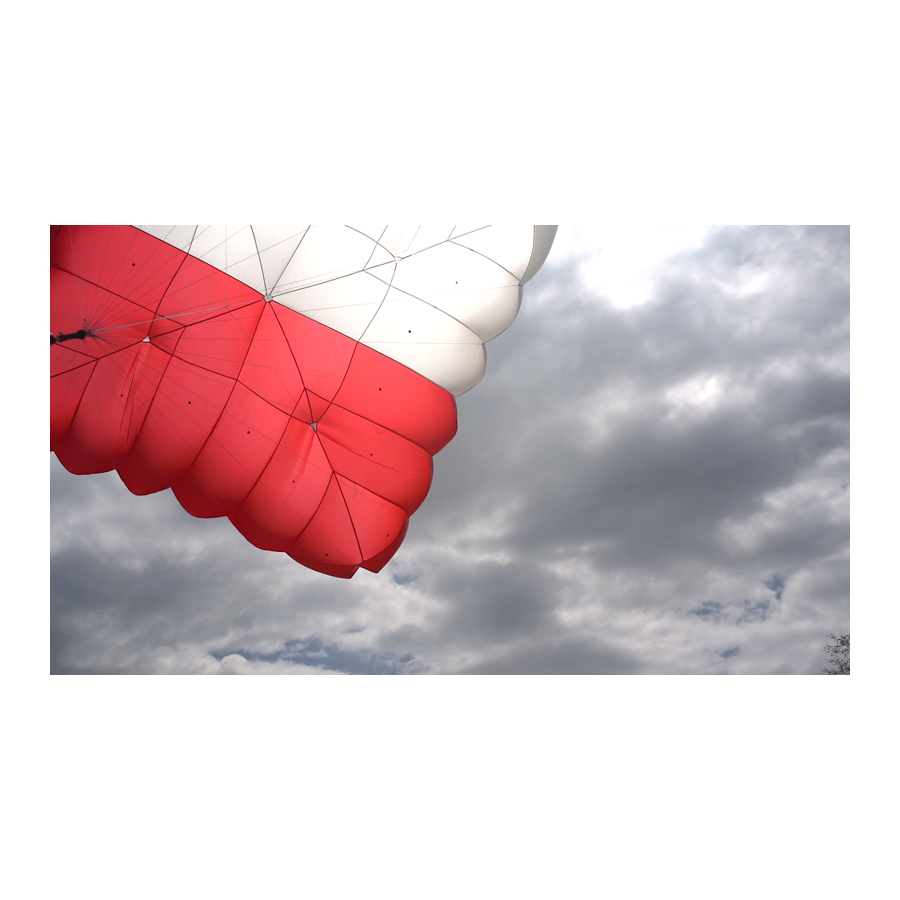 Parachute de secours ultraléger, stable en descente, et simple à plier.