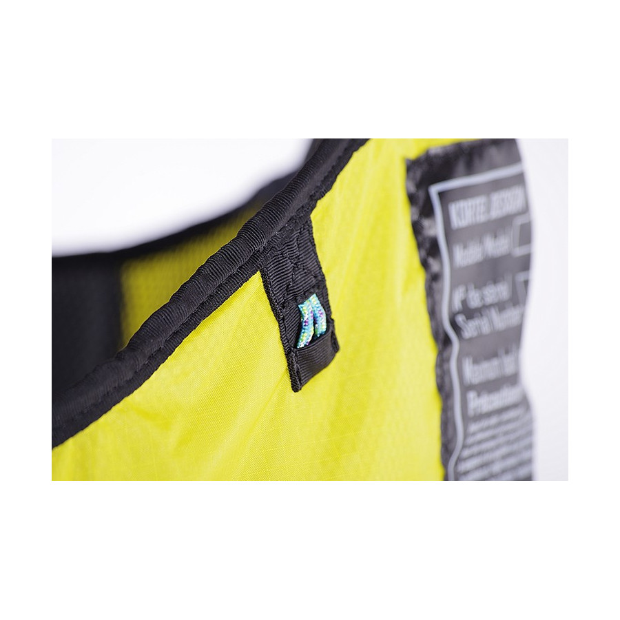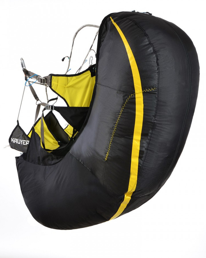 Le gain en poids a été obtenu grâce à l’utilisation de matériaux encore plus high-tech. La sangle Kevlar est remplacée par de la drisse dyneema plus légère à solidité égale, les mousses sont maintenant en EVA haute densité pour une meilleure tenue dans le temps. Le gain en confort a été obtenu en améliorant le soutien des cuisses, tout autant que par l’utilisation de cette mousse EVA. Les gabarits ont été également revu pour encore améliorer la prise en charge de la masse du pilote sans générer de point dur.