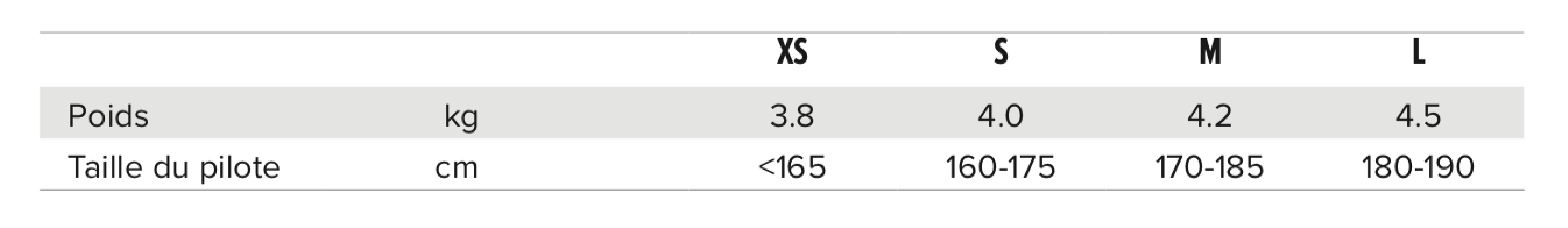 Poids :Ce tableau est indicatif, en fonction de votre poids, le choix de taille peut varier. N'hésitez pas à nous contacter ou mieux, venir en magasin, pour choisir la taille qui vous convient !