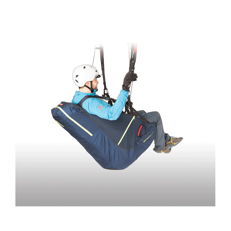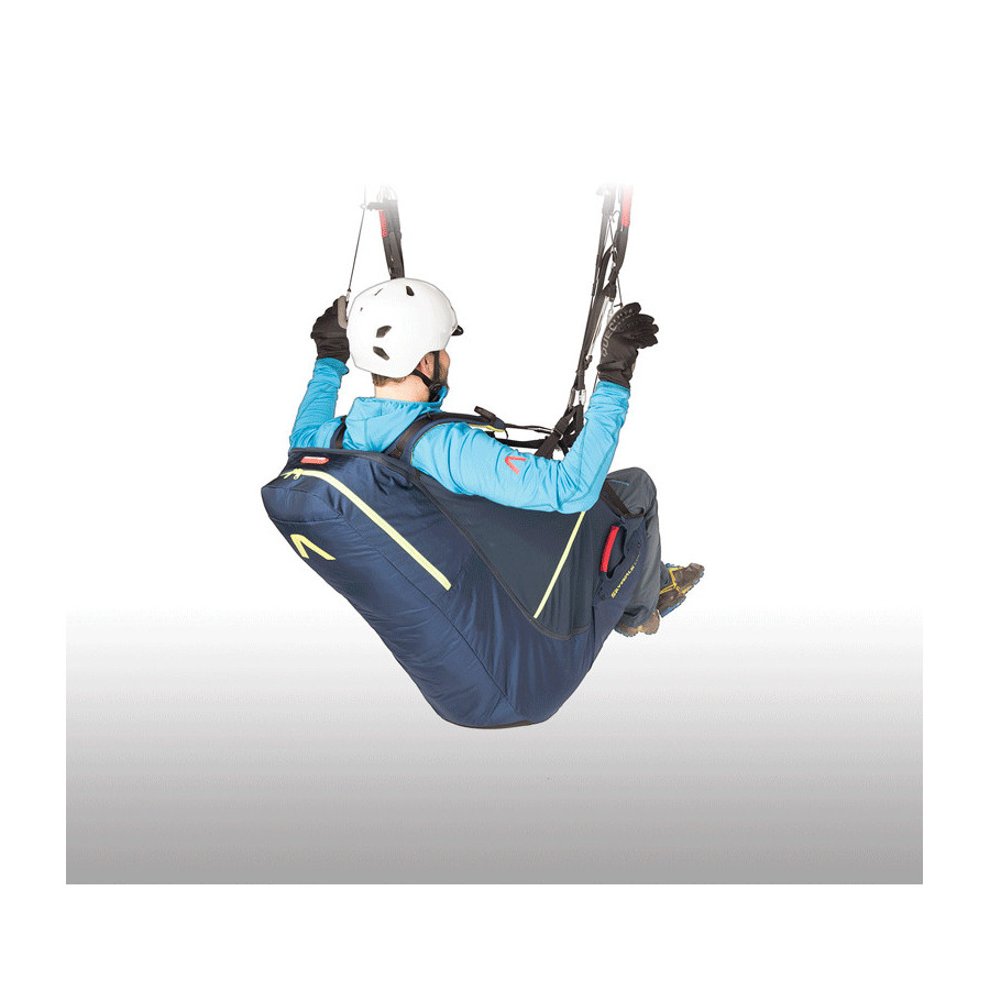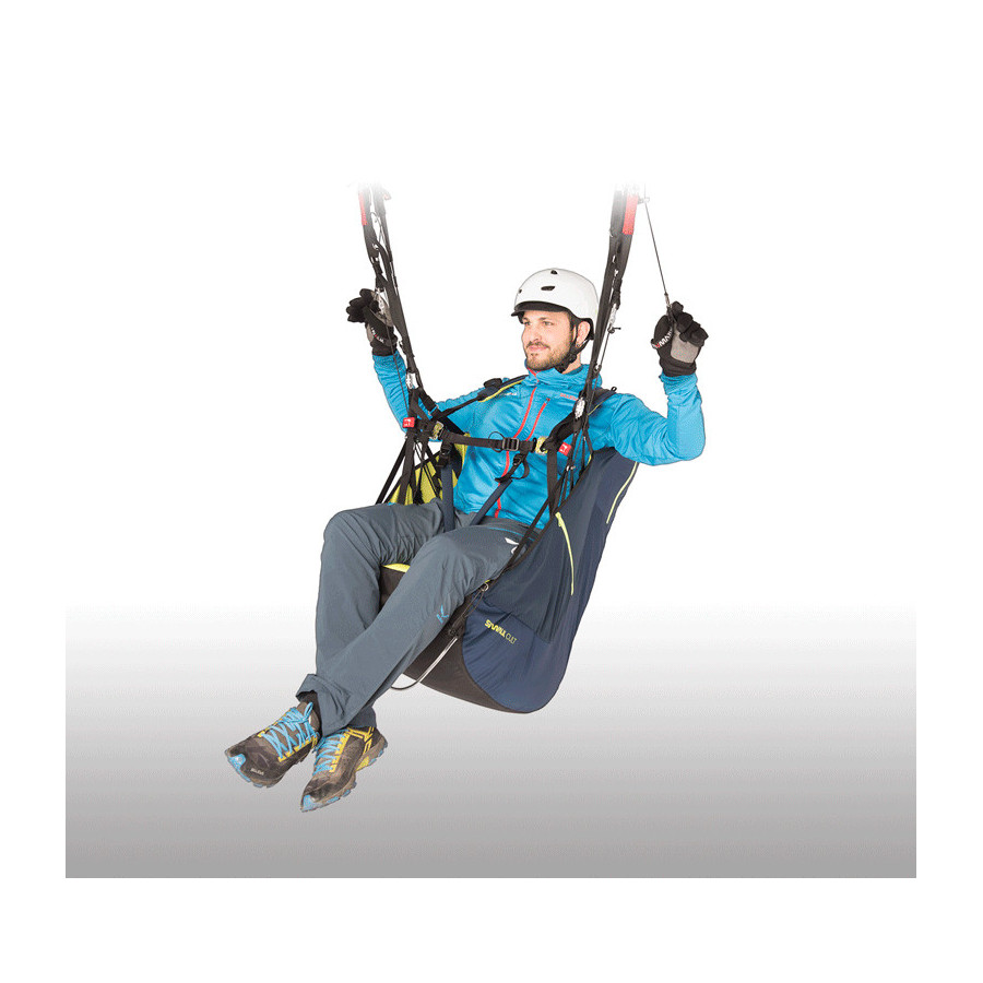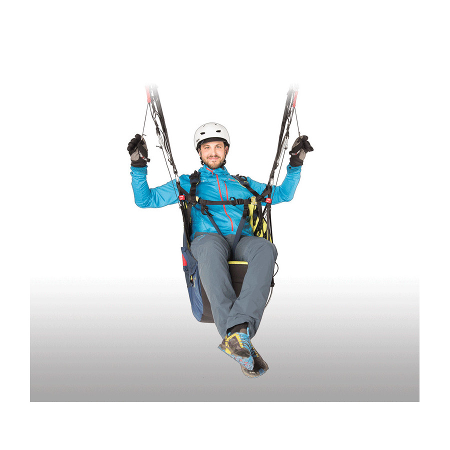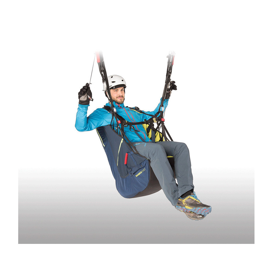 Nous avons aussi travaillé sur des détails améliorant la sécurité. Ainsi, ce modèle offre de nouvelles références dans le domaine du confort et de la sécurité de la sellette de parapente. La base de ce confort exceptionnel est la nouvelle répartition des forces qui assure une distribution idéale des points de pression.