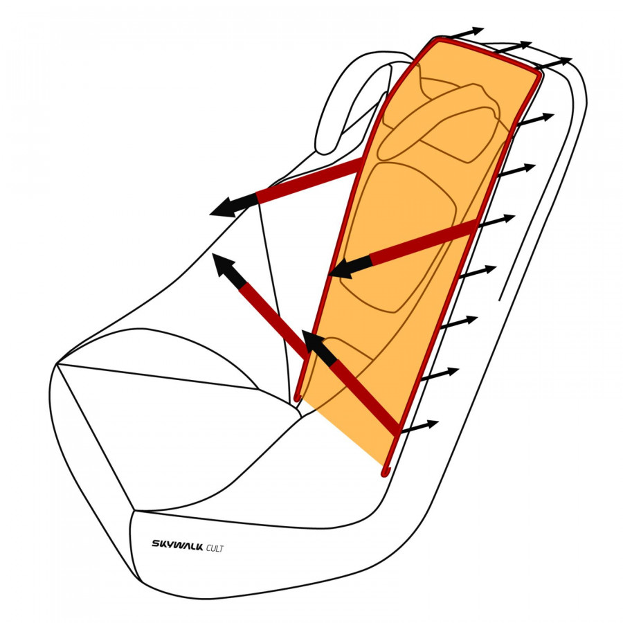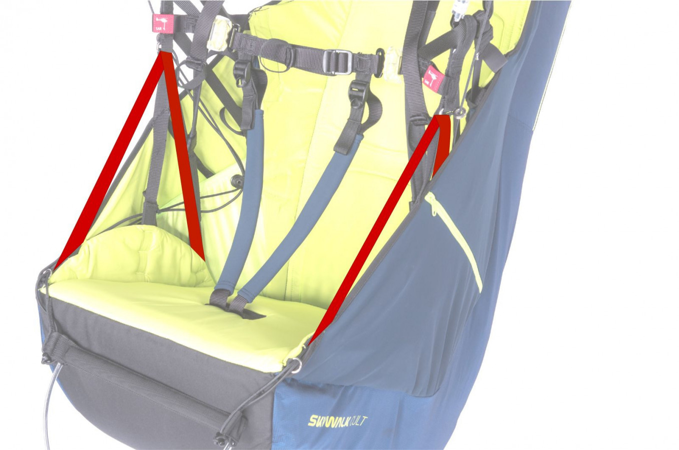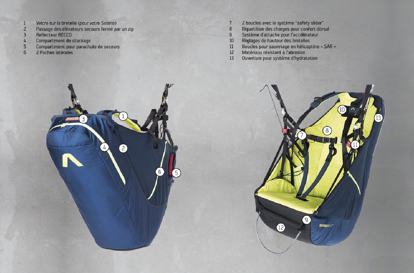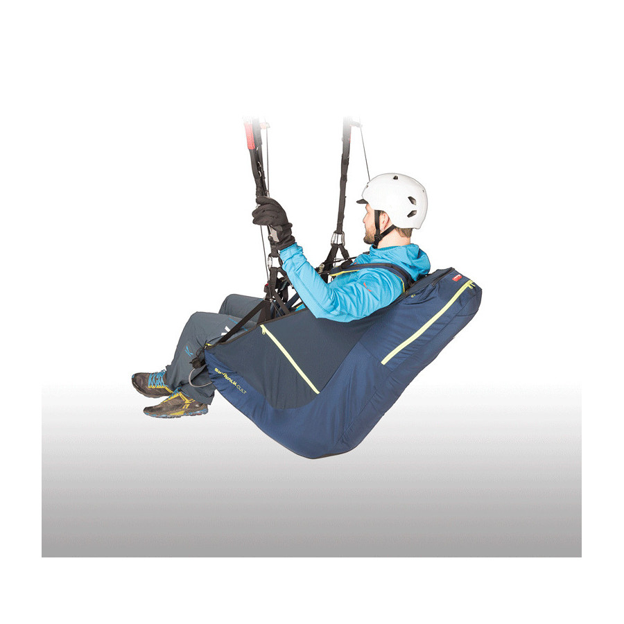 Nous avons aussi travaillé sur des détails améliorant la sécurité. Ainsi, ce modèle offre de nouvelles références dans le domaine du confort et de la sécurité de la sellette de parapente. La base de ce confort exceptionnel est la nouvelle répartition des forces qui assure une distribution idéale des points de pression.