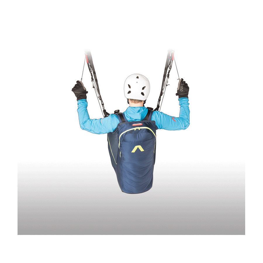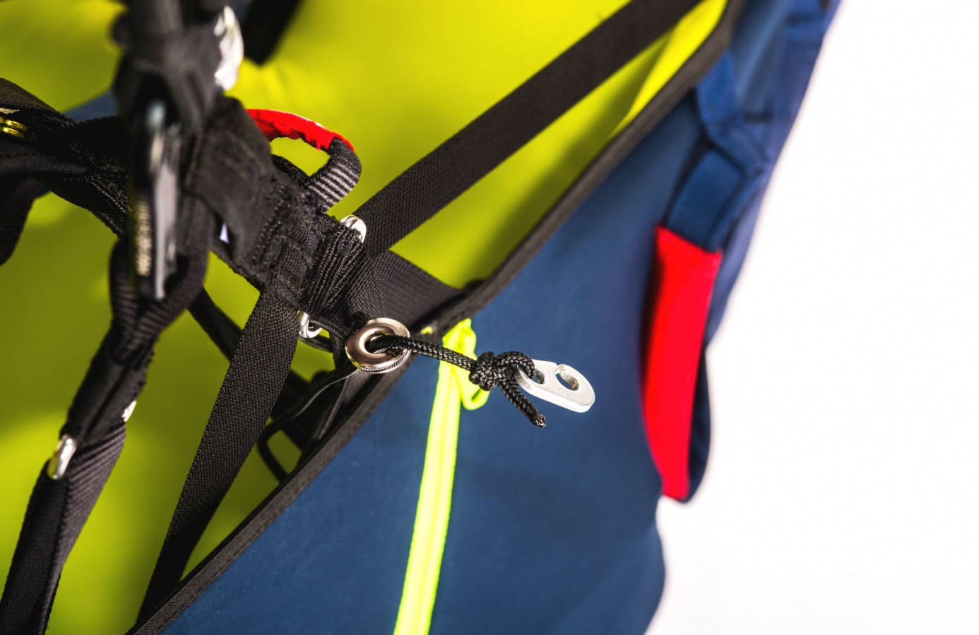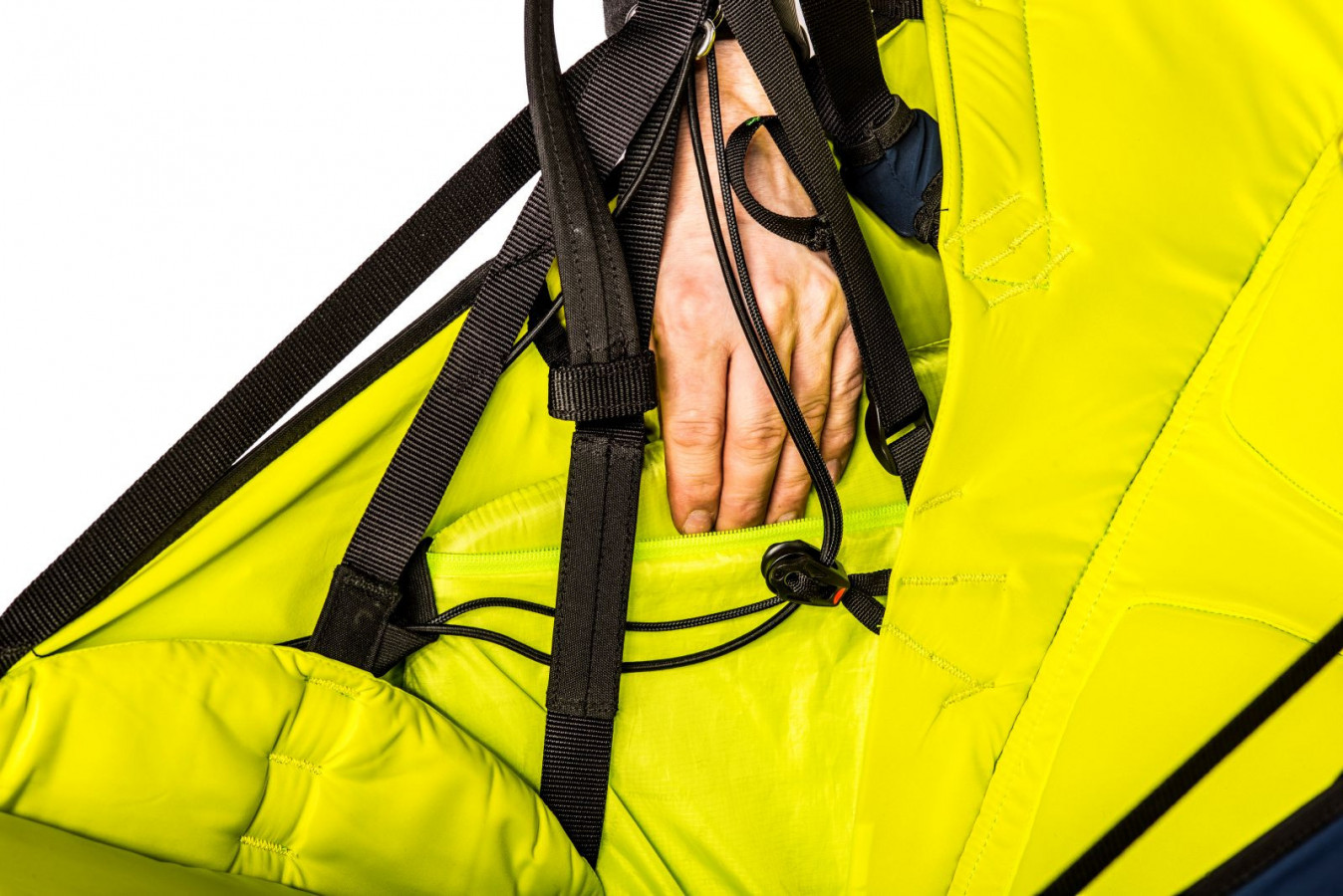 La CULT4 permet un réglage aisé avant le décollage ou pendant le vol. Dotée du systeme RECCO®, du Safety Slider sur les boucles principales et des loops SAR, sont aussi des détails qui améliorent la sécurité. La protection dorsale en mousse, parfaitement ajusté avec les protections latérales, assure la sécurité passive.