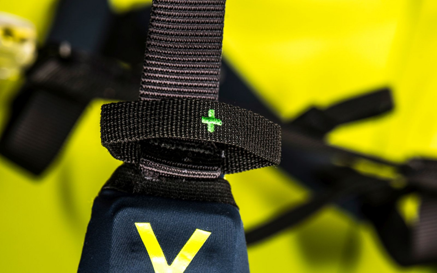 La poignée de secours est cousue sur le container du secours. Les matériaux du container sont parfaitement adaptés et garanti anti-frottement.