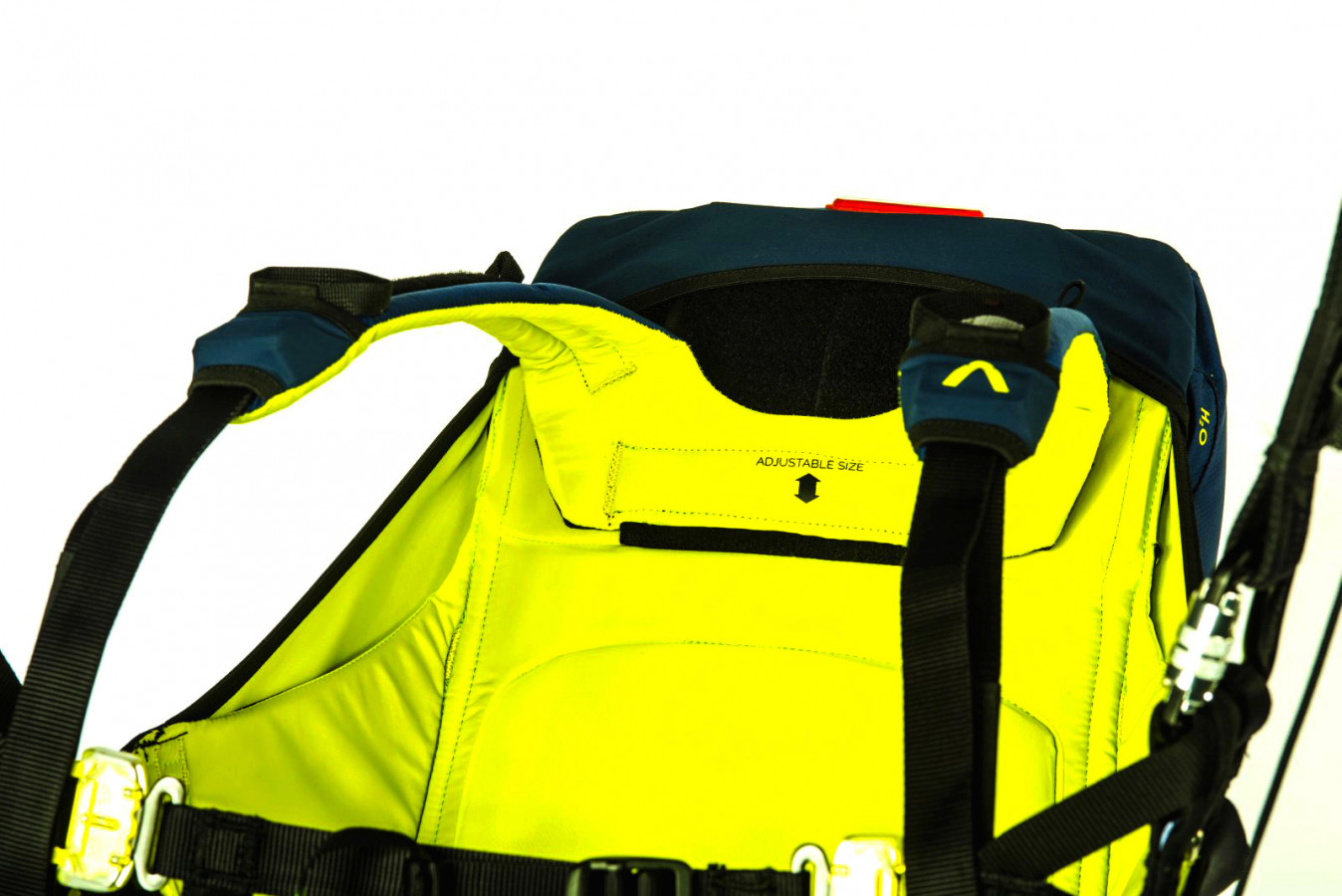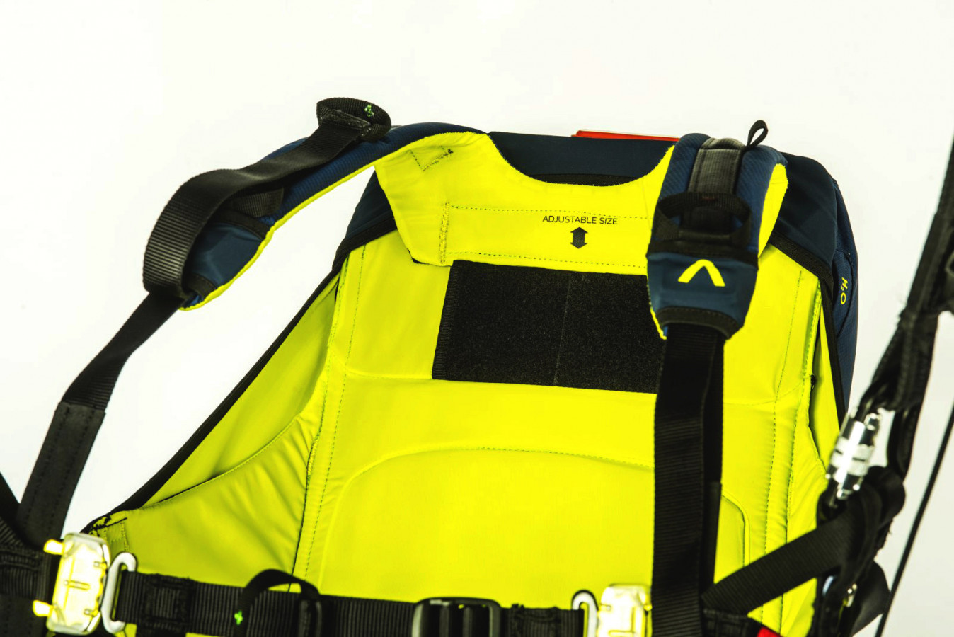 Réglage ajustable de la longueur du dos : Les bretelles peuvent être ajustées en hauteur et donc s’adapter individuellement à la longueur du dos du pilote.