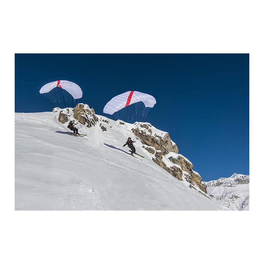 - Concept : voile pour les rando/freeriders pour monter super léger. Voile capable d’aller au plus pentu, facile à ralentir, très précise en phase de ski et vol.