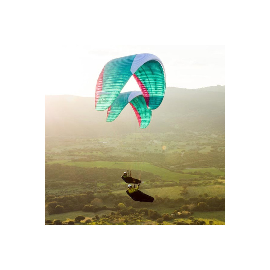 Avec le 3D Diamond Shaping, c’est une toute nouvelle caractéristique moderne qui est intégrée. Grâce à un nouvel agencement du 3D Shaping, la rétraction des coutures est optimisée et adaptée à l’extension du tissu, de sorte qu’au niveau du bord d’attaque, la voilure est encore plus lisse, assurant de meilleures performances. Des Sliced Diagonals optimisées en termes de tension et de poids assurent une transmission parfaite des forces dans la vie interne, et les Miniribs donnent un bord de fuite homogène. L’aile est d’une construction légère de qualité ADVANCE et ne pèse que 4.9 kg en taille 25. L’homologation se fait sans ligne de pliage.