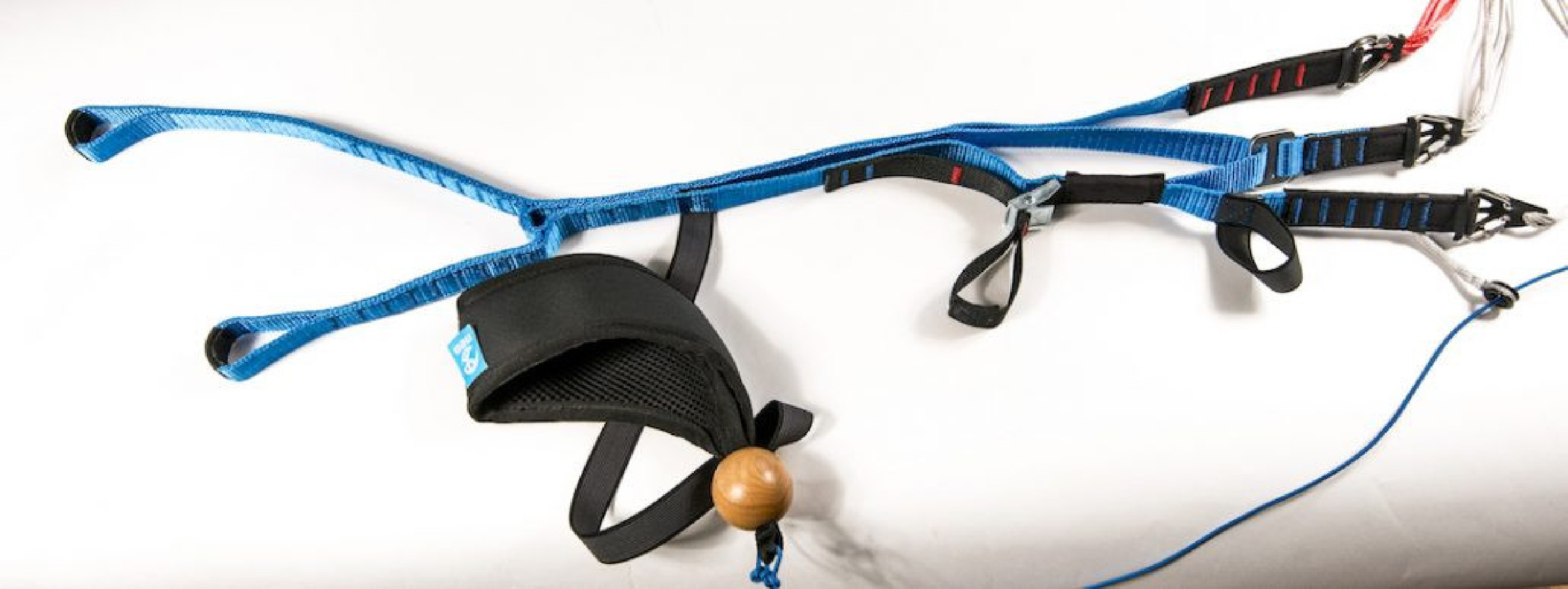 Les séparateurs souples Dyneema sont intégrés dans les élévateurs pour faciliter le maniement. Le couple élévateurs/séparateurs pose le passager à la bonne hauteur pour faciliter la visibilité, permettre un couple pilote/passager compact et cohérent, et enfin offrir un pilotage précis sans être très physique.