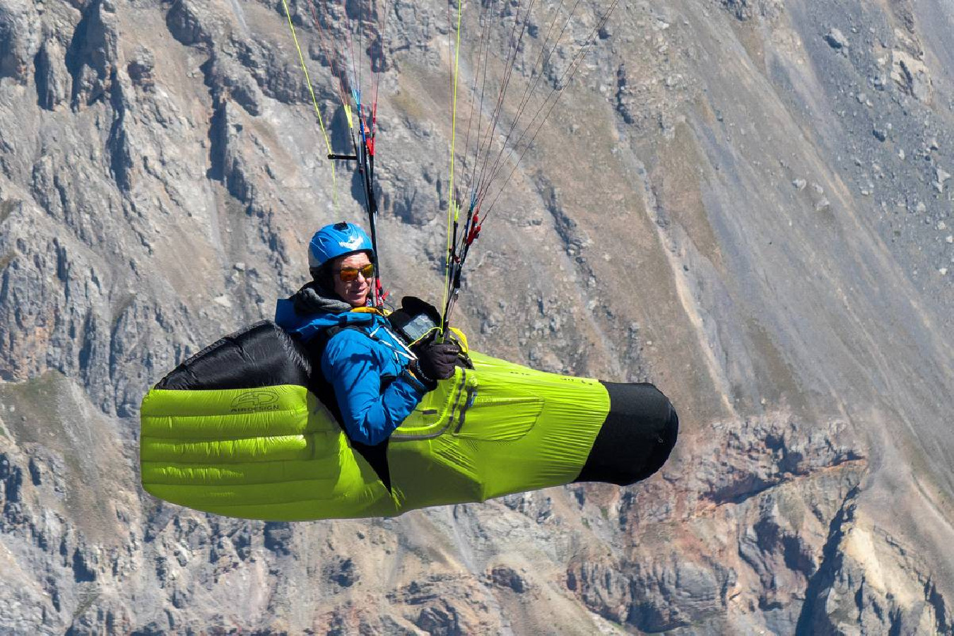 AIRDESIGN a conçu une sellette à la fois stable dans de vraies conditions turbulentes et suffisamment agile pour effectuer des virages, procurant ainsi la sensation du transfert de poids qui permet de piloter le parapente. Ils y sont parvenus avec une géométrie stable, un baquet confortable et rigide, des renforts au niveau des hanches, et une connexion particulière des cuissardes : tous vos mouvements se reportent directement sur les élévateurs pour une bonne connexion au parapente donnant une excellente autorité et beaucoup de précision en virage. A contrario, sur certains mouvements intempestifs de l’aile, la triangulation avant amortit/arrête les mouvements : vous n’avez jamais la sensation de "tomber" avec cette sellette.
