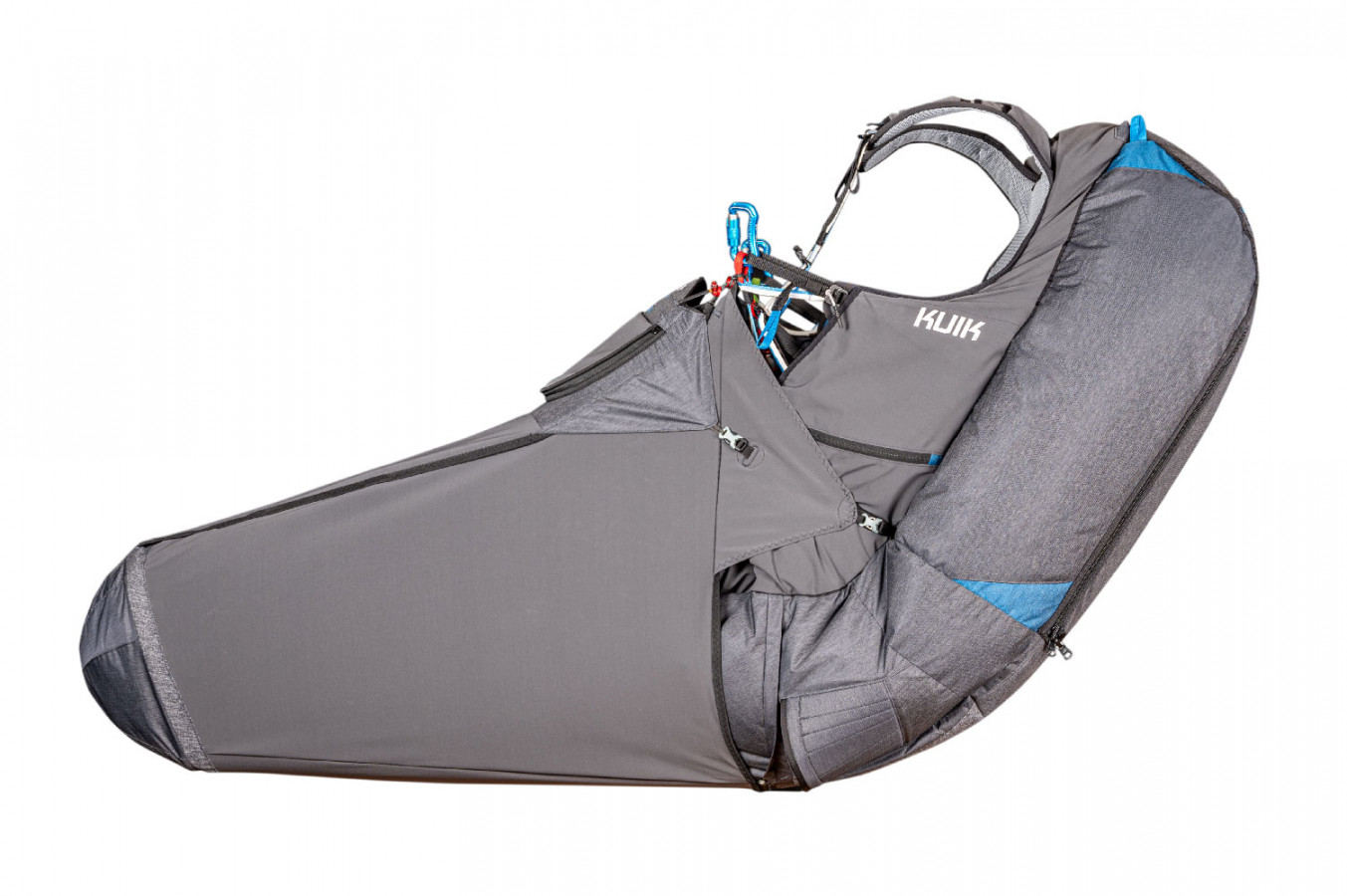 Kortel a travaillé plus de 3 ans pour concevoir un produit unique : un cocon réversible, modulable en sellette. Dans sa version cocon, la Kuik 3 répond à tous les besoins du pilote : confort, stabilité, précision de pilotage. Avec son airbag offrant un maximum de protection passive, elle est un choix judicieux pour les pilotes en progression qui pourront ainsi passer de la sellette au cocon.