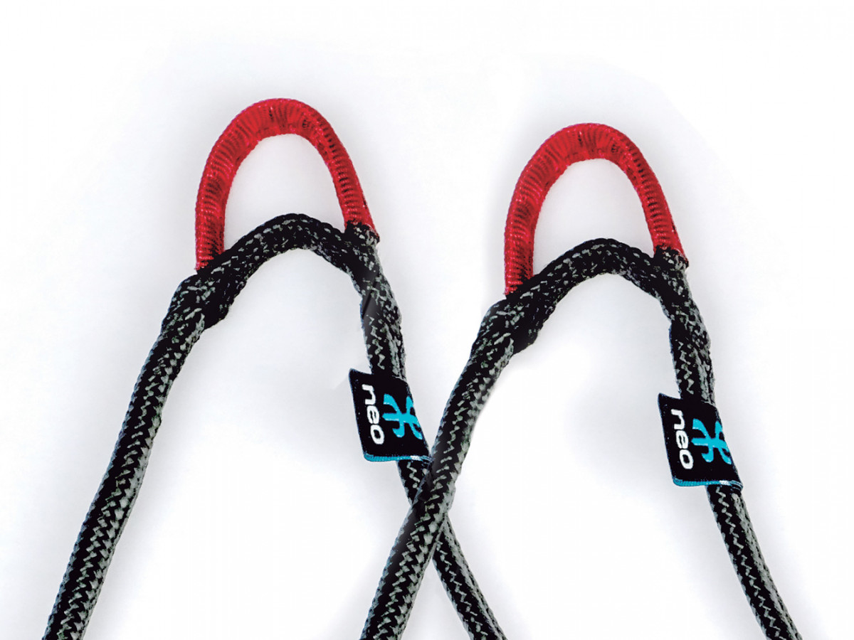 Les écarteurs NEO peuvent être montés en tête d’alouette sur des élévateurs Dyneema ou reliés par maillon quand les élévateurs sont de type classique (Kevlar ou Polyester).