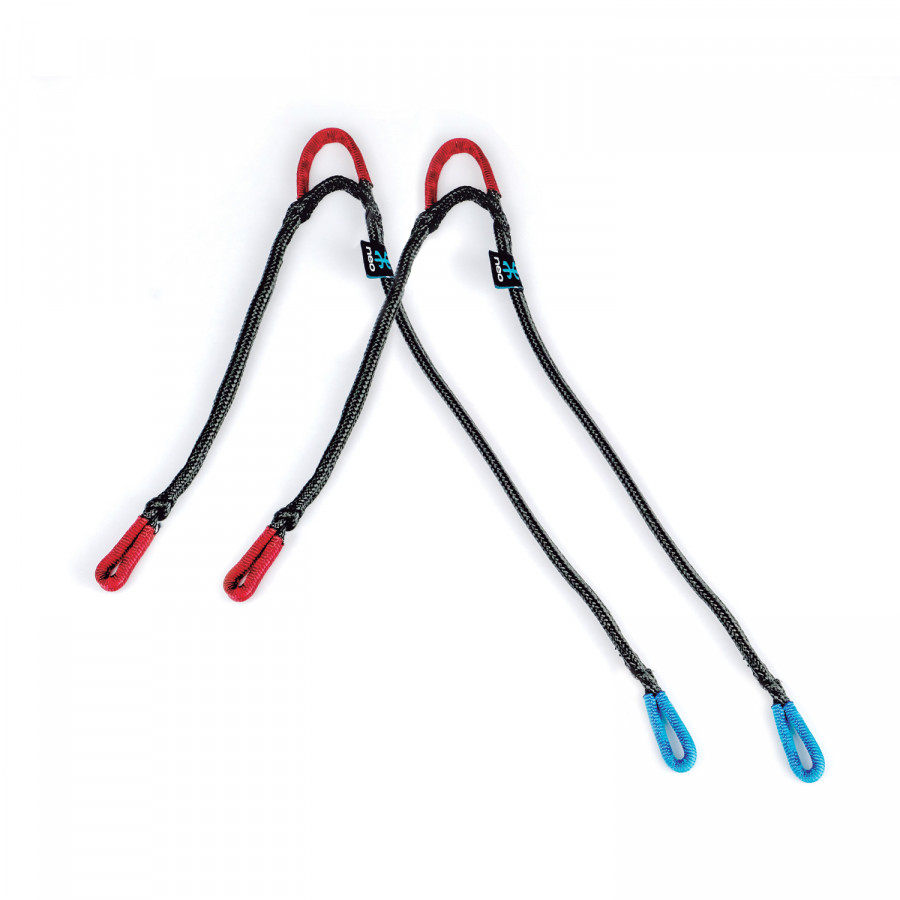 Élévateurs drisse Dyneema épissurée, possibilité de les monter avec les élévateurs en noeud plat ou avec maillons. Deux brins dissymétriques courts : côté pilote : 23 cm / côté passager : 34 cm Résistance : 3000 daN |