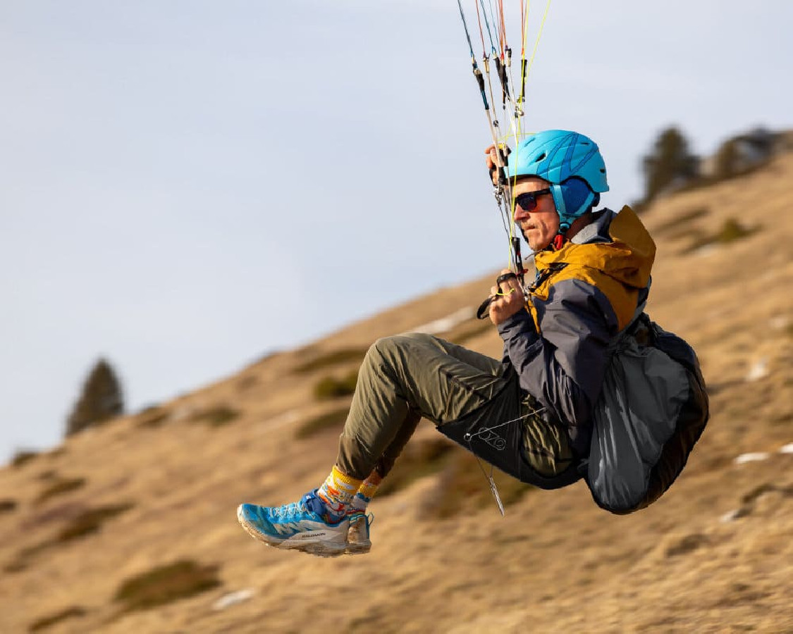 | En vol | Les sangles de cuisse qui s’ouvrent simplifient la mise en œuvre, que vous portiez des chaussures, des crampons ou des skis. La géométrie de la sellette facilite les transitions entre les positions debout et assise. Le support lombaire généreux et les sangles d’épaules molletonnées assurent votre confort, que ce soit pour une session de soaring ou pour une longue descente. |