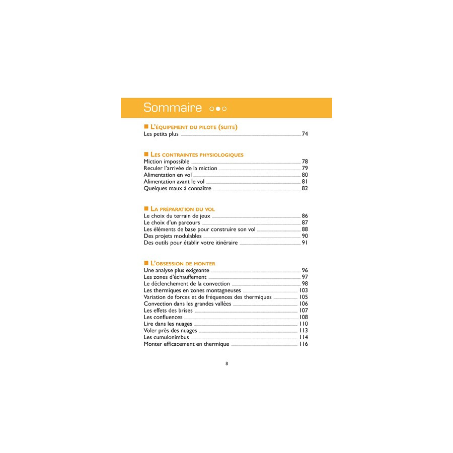 Depuis le choix de l’équipement jusqu’à l’optimisation de la navigation, en passant par la préparation physique et surtout mentale, la technique de pilotage, la gestion de la sécurité et d’autres pistes de réflexion inattendues, ce livre traite de l’ensemble des facteurs qui permettent de voler le plus loin possible en se faisant plaisir.