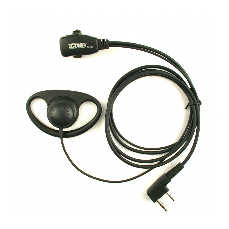 La micro oreillette CRT 332 K est équipée d'une pédale PTT avec une pince attachable et un cordon de 1m50. Le déclencheur et le micro se positionnent au niveau du menton/cravate.