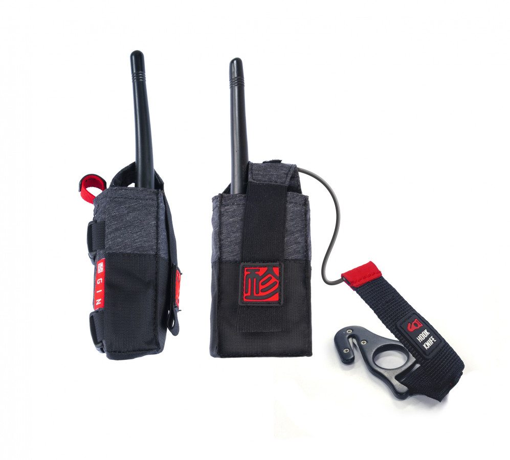 Le porte radio HOOK est un porte radio qui intègre un coupe-suspente et une sangle à passer autour de la poitrine.