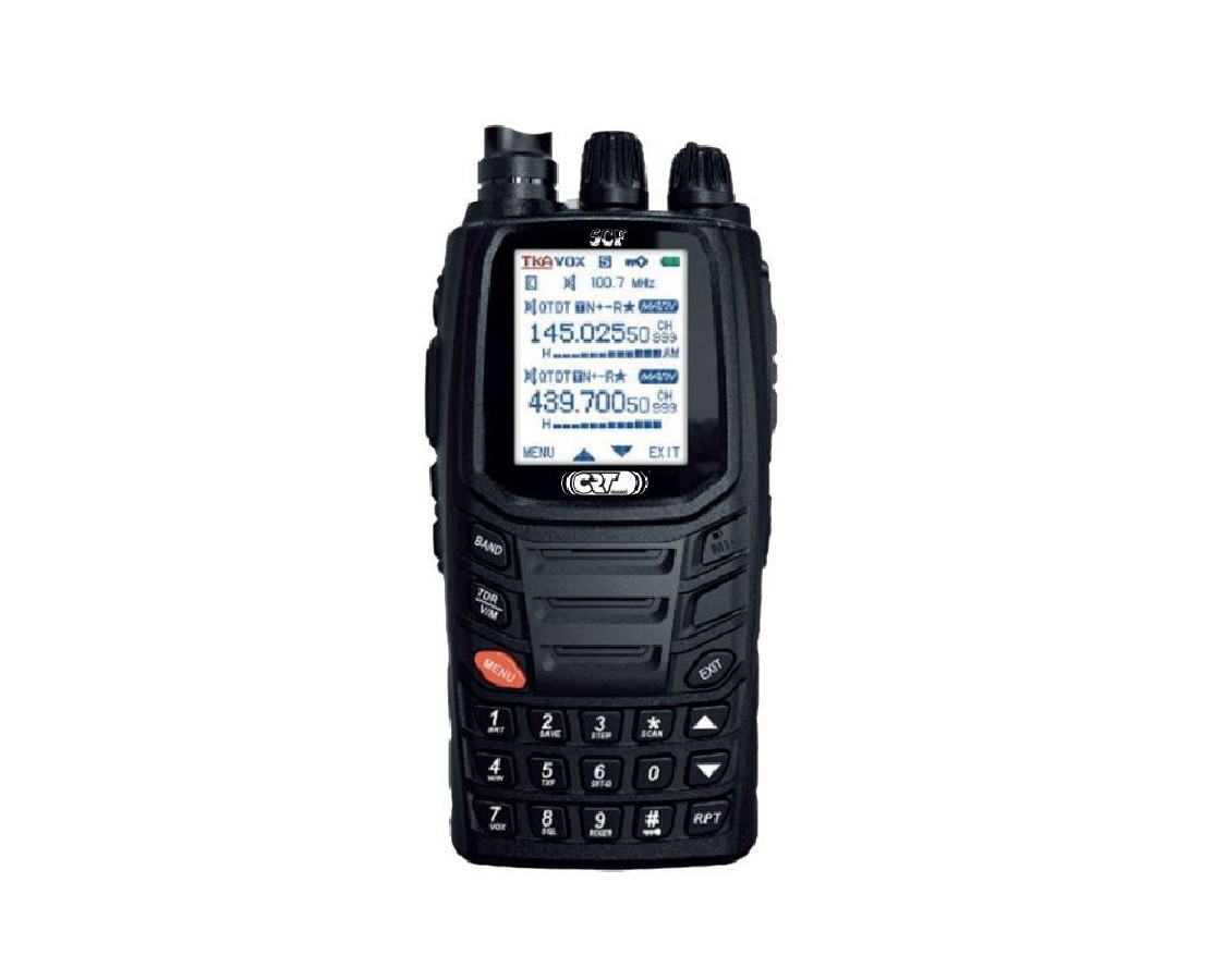 La radio CRT 5CF est un une radio amateur bi-bande dotée de véritables doubles récepteurs simultanés, avec la réception VHF AM 108-136 MHz (bande aviation avec espacement 8.33K) et un large écran couleur pour une d'utilisation optimale.