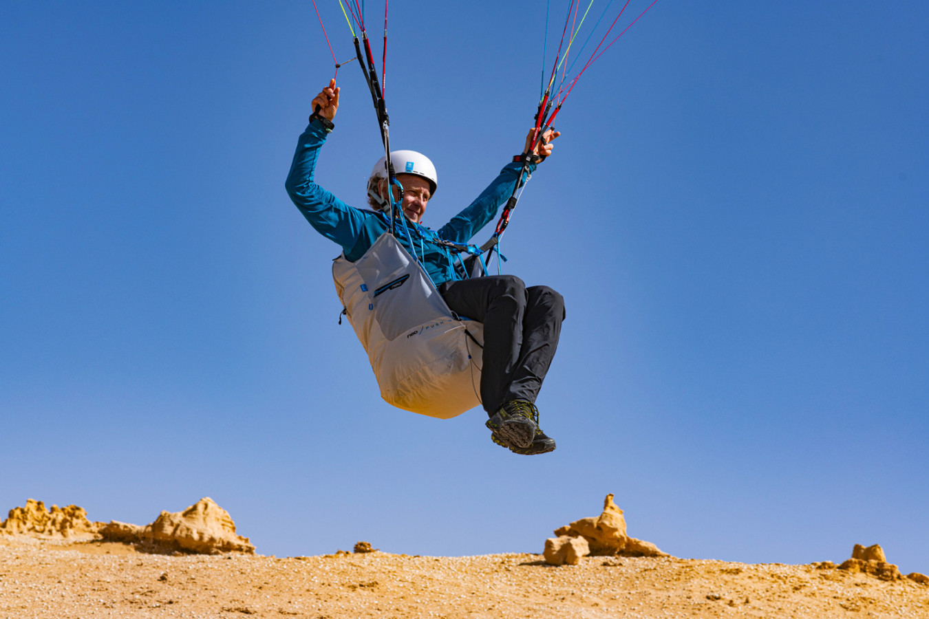 "Cet hiver, Marc Boyer, fondateur de Soaring & Jérôme Maupoint, photographe, sont partis au Maroc pour faire un shooting photo et tester la toute première sellette assisse de chez Neo : la Push Up.