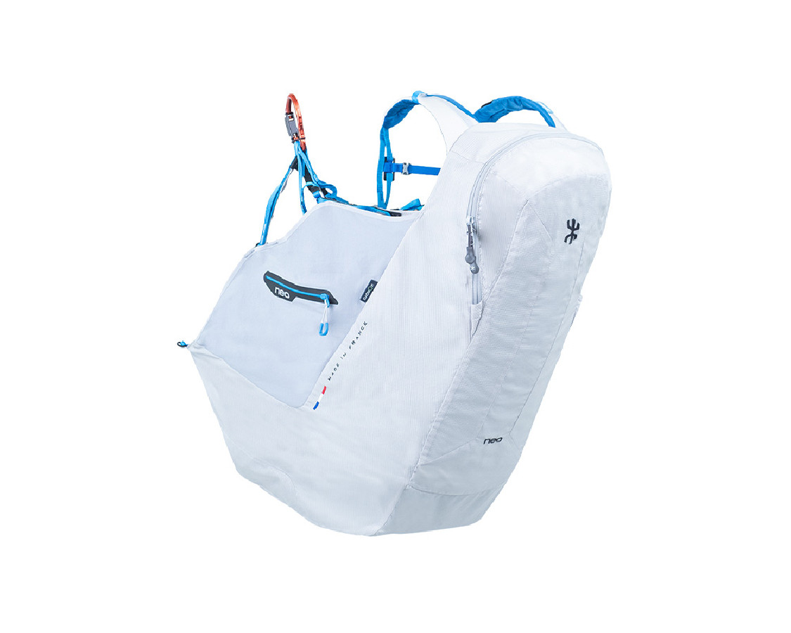 Pour faciliter le compactage de votre sac, mais aussi pour garder la liberté de voler avec ou sans secours en Marche & Vol ou en soaring, Neo a fait le choix que le parachute de secours serait amovible sur la Push-Up.