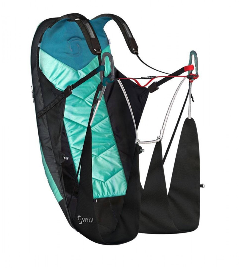 Bien accessoirisée (porte-bâtons, ceinture ventrale amovible), on touche avec les yeux : chaque détail utile, chaque finition travaillée, chaque matériau choisi pour sa noblesse et sa durabilité. La structure de la sangle et du châssis , l’airbag sous-cutal repositionné en avant de la sellette et utilisant un jonc conçu avec un matériau résistant, ont été pensés pour améliorer la sécurité. Le sac à dos et la sellette ont été conçus séparément pour pousser dans leurs retranchements les solutions techniques et esthétiques.