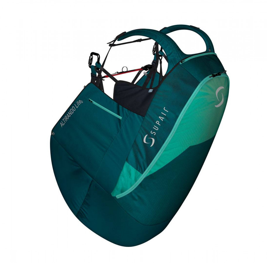 l’ALTIRANDO LITE 2 est équipée d’un airbag sous-cutal pré-formé qui assure un haut niveau de sécurité passive dès le décollage. La poche secours est également positionnée sous l’assise. Son design a été travaillé pour une installation simple du parachute dans la poche et pour éliminer tout risque d’ouverture involontaire de la poche.