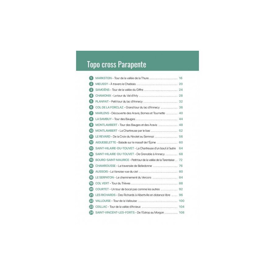 Ce topo de cross détaille 40 vols dans les principaux massifs français : Alpes du Nord, Alpes du Sud, Vosges, Massif central, Pyrénées et Corse. Pour chaque vol, toutes les infos indispensables sont détaillées de manière précise : cheminement, orientation des brises, pièges aérologiques, zones aériennes, altitude de transition, sommets survolés, difficulté du parcours, météo favorable et un lien QR-Code vers une trace GPS consultable en ligne.