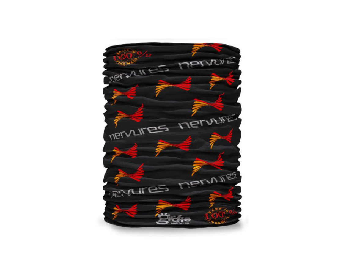 Le tour de cou emblématique de Nervures, fabricant français d’équipements de parapente basé dans les Hautes-Pyrénées.