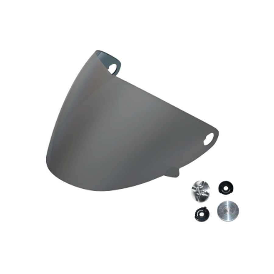La visière en polycarbonate se monte sur le casque grâce à une visserie spécifique vendue en option. Elle est incassable et dotée d'un traitement anti-reflets, anti-rayures et antibuée. Comme elle offre une protection UV à 100 %, elle peut remplacer des lunettes de soleil.