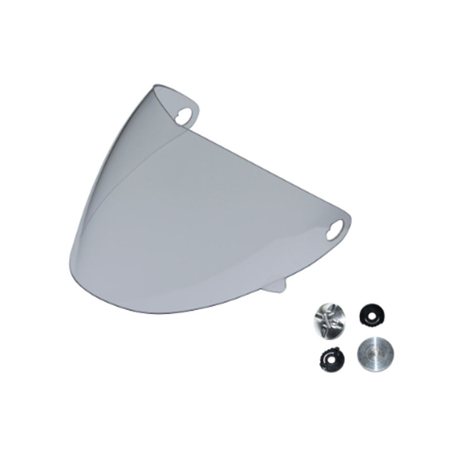 La visière en polycarbonate se monte sur le casque grâce à une visserie spécifique vendue en option. Elle est incassable et dotée d'un traitement anti-reflets, anti-rayures et antibuée. Comme elle offre une protection UV à 100 %, elle peut remplacer des lunettes de soleil.