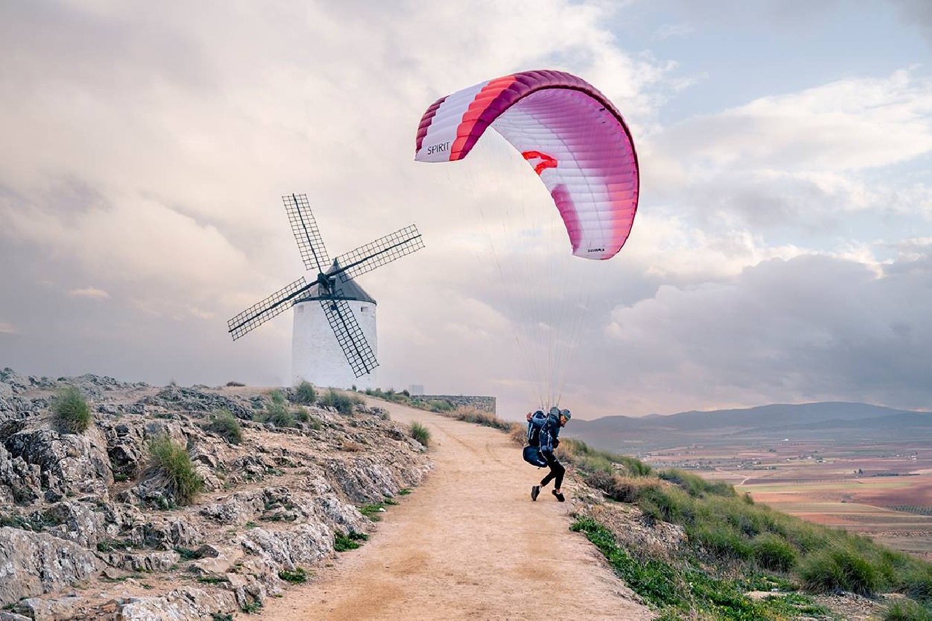 Dans les airs, la SPIRIT réagit vivement et directement aux impulsions de contrôle grâce à sa petite envergure et ses suspentes courtes. En turbulence, elle reste très stable, mais demande un peu d'expérience et un style de vol actif à forte charge alaire du fait de son agilité.